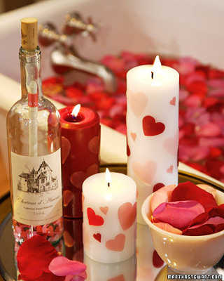 - Rosas en la bañera: habíamos planteado la idea de que este sea un día en el que él está volviendo del trabajo. Tienes la habitación decorada, la escalera decorada y lo más probable es que venga con muchas ganas de una ducha. La bañera es el lugar perfecto de la espera, es ahí donde te puede encontrar y para hacer aún más interesante puedes poner pétalos de rosas y un vino blanco o su bebida favorita.